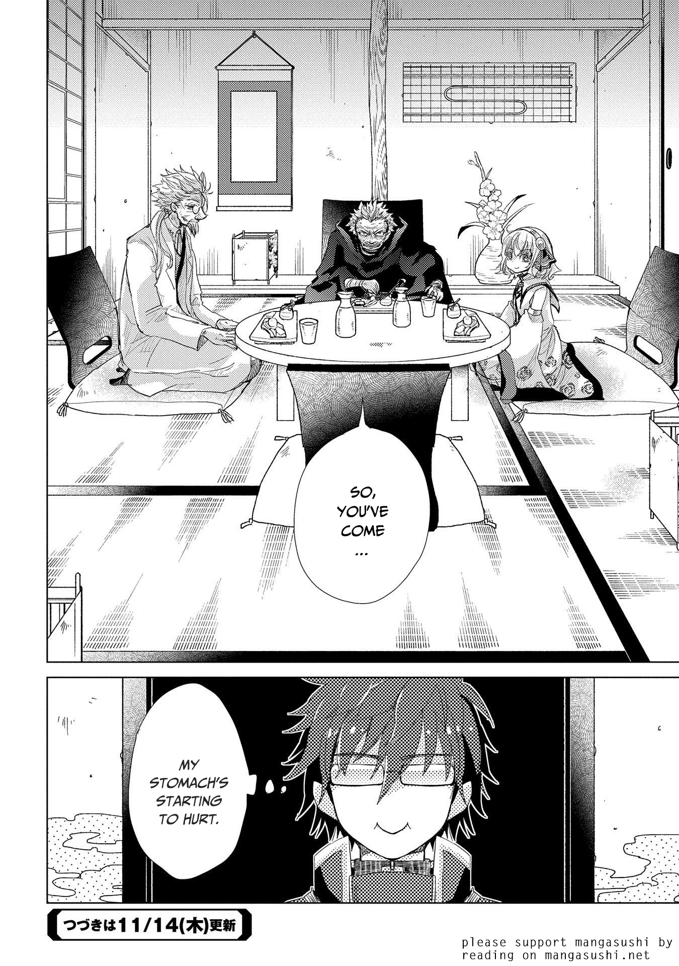 An old man having dinner with 3 children